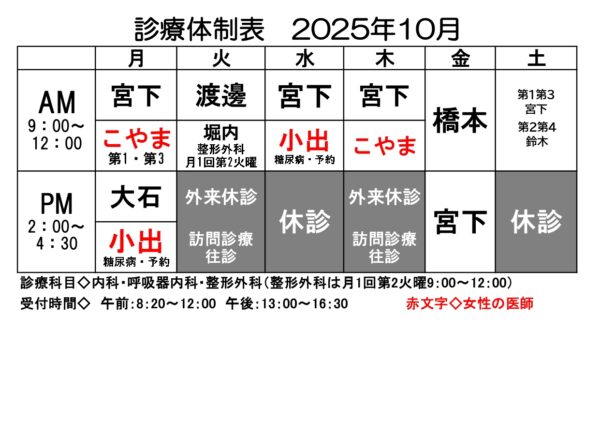 診療科目 | 内科、整形外科 禁煙外来、機能強化型在宅療養支援診療所 |